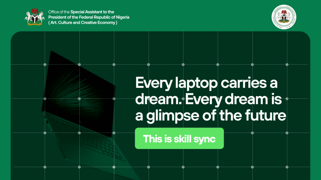 The Skill Sync Initiative is a flagship initiative under The Office of the Special Assistant to the President on Art, Culture, and the Creative Economy. It equips young creatives with the tools, training, and connections they need to thrive in Nigeria’s growing creative industry.
